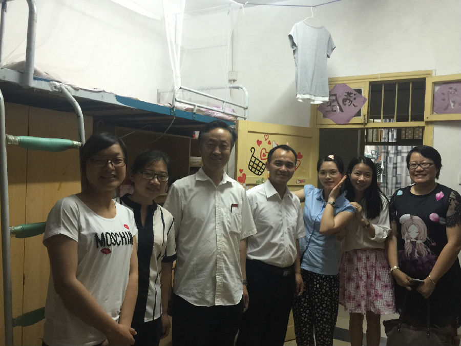 6月16日晚,在龙进良书记、易臣何书记的带领下,院学工办老师来到了毕业生寝室,给即将离校的同学们送去祝福,让他们的大学生活划上了一个圆满的句号。