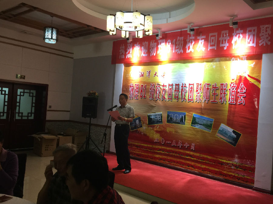 午宴开始,推杯换盏,觥筹交错,再见到记忆里那群亲爱的伙伴们,校友们难掩激动,笑容可掬,三五成群调侃打趣:聊一聊湘大改变,叹一回岁月如梭。最后,校友们合唱一曲《年轻的朋友来相会》,余音绕梁,将宴会气氛推向高潮……