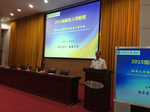 教师代表祁祥分享了自己学习成长的经历,鼓励学生们“学有所成时,必有用武之地”,叮嘱大家在校学习期间要踏踏实实,戒骄戒躁。老生代表、2014级集成电路工程专业研究生王昊天代表全体老生向新生表示了欢迎,言语间洋溢着浓厚的湘大情结。新生代表、2015级物理学韶峰班徐天成则表达了对大学生活的憧憬和逐梦大学的决心。