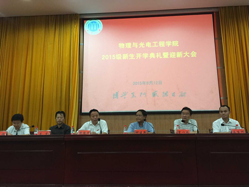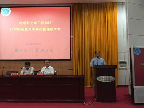 大会共分为两个阶段,第一阶段为新生开学典礼,第二阶段为新生入学教育。上午10:00,迎新大会正式开始。钟建新院长向2015级全体新同学致欢迎词,表达了英国365集团公司官网这个大家庭对2015级新同学们的热烈欢迎。钟院长详细地介绍了学院基本情况,从学院历史、师资队伍、科研平台、学科建设等多各角度向2015级新生展示了英国365集团公司官网的风采。钟院长动情地描述了自己30多年时间里在物理学院的奋斗历程,勉励2015级新生一定要把握大学时光,尽早明确奋斗目标,通过扎实的学习和丰富的实践,努力实现目标。