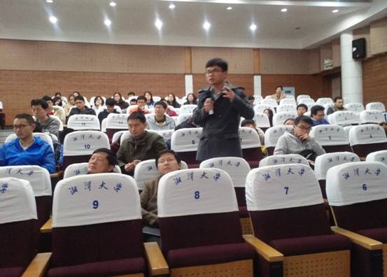 在钟院长简单介绍完汤超教授的研究历程和成就后,汤教授开始了他精彩的报告会。首先,他向我们介绍了生命态物理的发展时期,并且告诉我们它未来发展领域很大。汤教授让我们认识了21世纪的新生物学、生命世界中不同层次的结构与现象以及生物系统的稳定性与鲁棒性。接下来他详细讲解了生物中细胞周期调控的布尔代数、细胞生命的转化和细胞分化的网络模型,与此同时我们也知道了细胞周期路径是一条全局稳定的轨迹。最后,汤教授告诉我们在科技发展过程中,新工具总能发现新现象,生物技术带来了大量的精确数据,对生命现象的研究必将推动其它学科。汤教授做完报告后,很多同学和老师都站了起来说出了自己对生物物理的想法和困惑,汤教授对提问一一详细解答。
