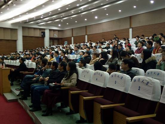 在钟建新教授致完开场辞后,于渌院士在一片激昂的掌声中开始了他的学术报告。首先,他阐述了二十世纪五六十年代中国的凝聚态物理的状况——非常薄弱,处于刚起步阶段。而后,他又介绍了一批优秀、杰出的科学家。通过他们的杰出成就,让我们看到了他们在国际舞台上大放异彩。这让在场的老师、同学们变得热血沸腾。之后,他通过一些真实、励志的故事,讲述了他们那个年代艰苦的做试验、做研究的经历。他说,这也是为了鼓励现在的年轻人,让他们在做事方面持之以恒,坚持到底。然后,他提到了科学知识是人类的共同财富、合作和交流是发展科学的必经之路的科学道理。