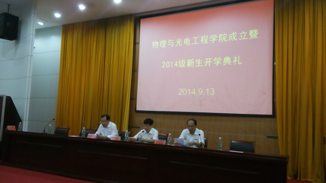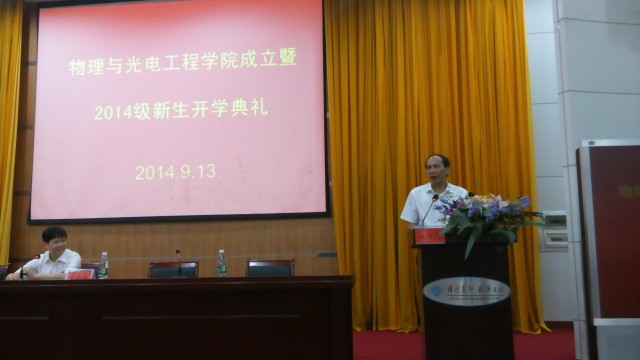 教师代表杨雪娟博士、在校生代表13级研究生李鑫、新生代表14物理2班李廷炜先后在开学典礼上发了言。开学典礼后,张佑祥为全体新生作了入学教育报告。下午,2014级新生按专业举行了专业教育。