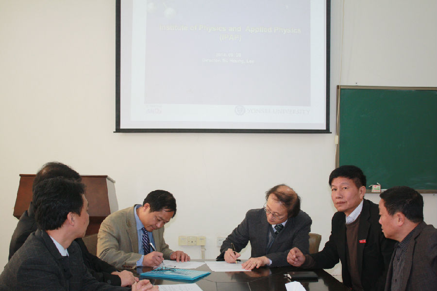 钟建新介绍了英国365集团公司官网历史沿革、办学优势和目标定位,并对英国365集团公司官网的发展历史、学科建设、科研平台、实验建设和人才培养等方面进行了详细介绍;朴胜汉对延世大学的发展历程及现状,以及理学院的办学理念、人才培养和国际合作等方面进行了交流;玄昇峻介绍了物理系的基本情况。座谈会后,双方就合作办学、学生交换和联合培养等事项进行了深入的讨论,商讨并初步确定了日常对接工作计划,签署了合作办学协议。会后,朴胜汉教授一行参观了校园。