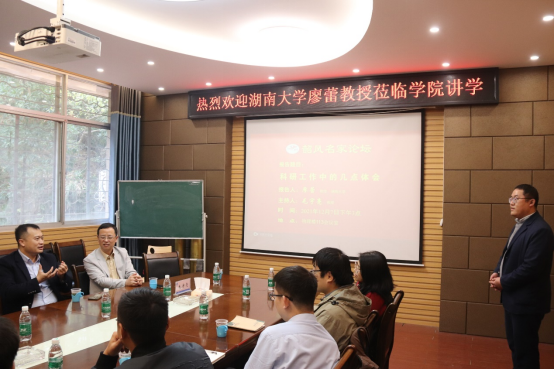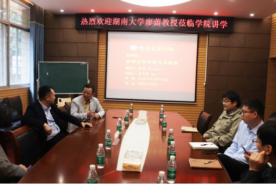 大会报告后,廖蕾教授莅临物理学院和老师们亲切交流会谈,对学院的科研工作给予指导,并分享了科研工作中的一些体会。学院青年教师结合自身实际主动向廖蕾教授提问,廖教授都给予了热情地回答,解开了他们的疑惑。科研教师经过教授提点,有了更明晰的方向。