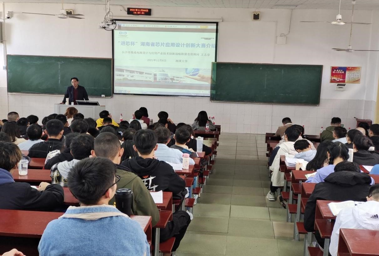 11月8号下午,“进芯杯”湖南省芯片应用设计创新大赛培训宣讲活动在南山第七阶梯教室如期举行,活动现场座无虚席,氛围热烈。