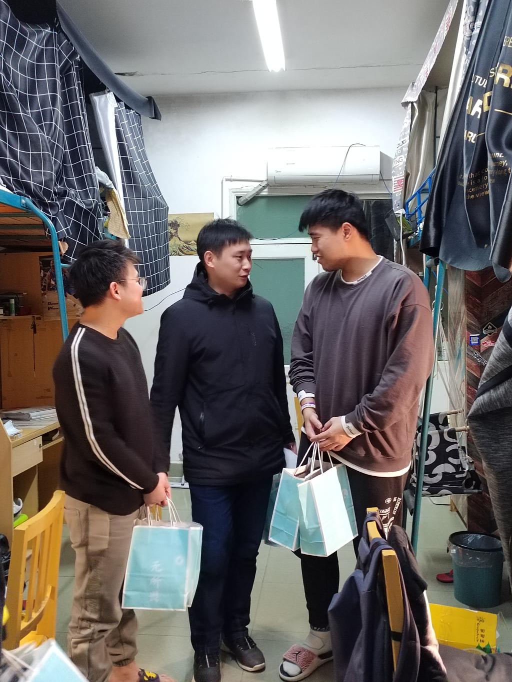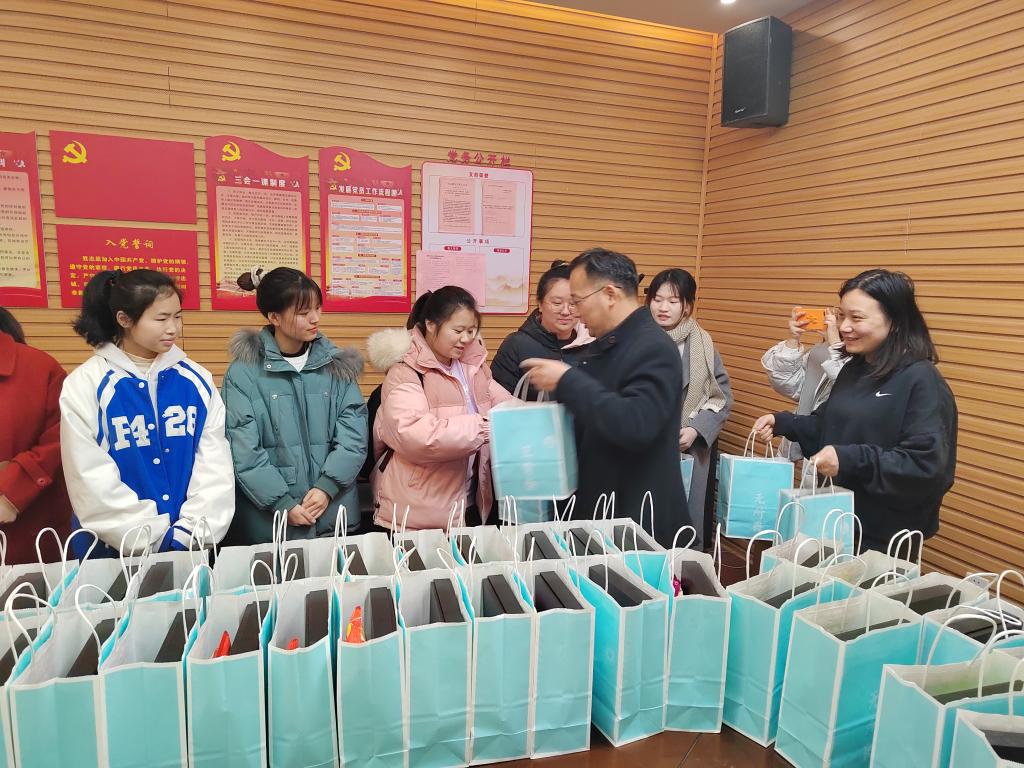 考研助力大礼包里有喻意“一旺到底”的牛奶、“一切皆为乐事”的薯片,特别是寓意着“金榜题名”的定制笔记本,上面印有学院院徽和“I♡XTU”的logo,深受同学们的喜爱。院党委书记刘轩鼓励同学们:“沉着应对,正常发挥,一定没有问题,祝福大家考研顺利!”