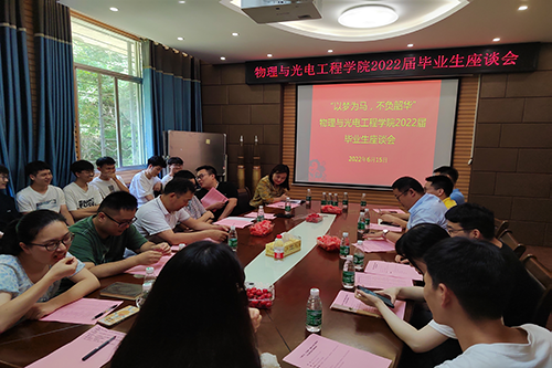 一次愉快的畅谈。6月15日下午,“以梦为马,不负韶华”毕业生座谈会在物理楼113会议室召开,本、硕、博毕业生代表与学院领导、教师代表一起畅谈师生情谊、共话学院发展。在轻松愉快的氛围中,毕业生们畅所欲言,围绕着实验室建设、课程设置、学生活动等积极建言献策。学院也精心准备了毕业纪念视频和纪念品,带给同学们无数惊喜与感动。