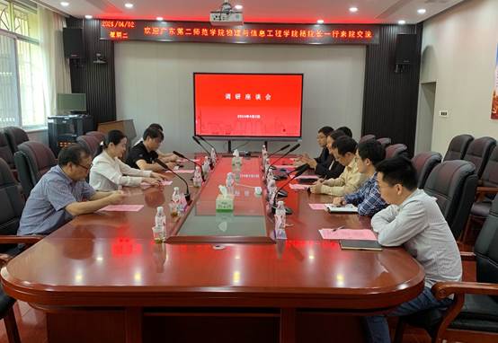 4月2日上午,广东第二师范学院物理与信息工程学院杨飒院长、林洽武副院长、物理学专业负责人周仁龙、实验教学中心主任何学良一行4人来院交流,365集团杨雪娟院长、毛宇亮副院长、祁祥副院长、院长助理/物理系主任欧阳滔、基础物理实验教学中心主任张建福、微电子科学与工程系副主任胡金勇出席座谈交流会。