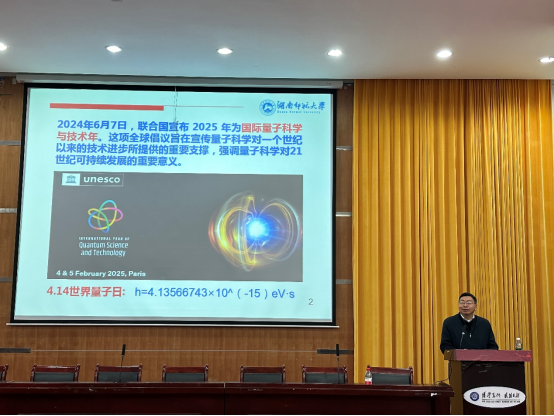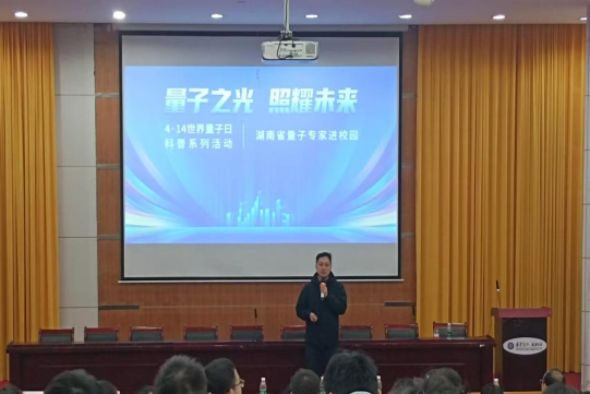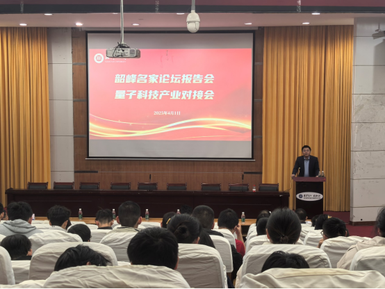 4月1日下午,韶风名家论坛和量子科技产业对接会在我校逸夫楼报告厅举行。中国量子力学研究会副理事长、湖南师范大学匡乐满教授和长沙量子测量产业技术研究院李路康主任作专题报告分享。校党委委员、副校长刘金刚教授出席,师生代表400余人参加。