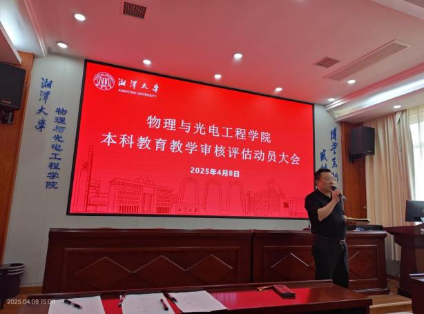 为全面贯彻落实教育部关于本科教育教学审核评估的工作要求,进一步深化教育教学改革,提升人才培养质量,物理与光电工程学院于2025年4月8日下午3点在物理主楼319会议室召开本科教育教学审核评估动员会。学院领导班子、各系(中心)主任、专业负责人、教学督导组成员及全体教职工参加会议。会议由学院党委书记刘轩主持。