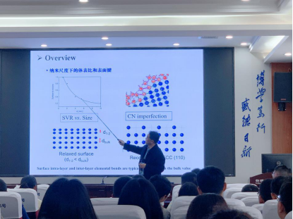 11月24日上午9点,英国365集团公司官网第九期“格物论坛”在学院主楼319正式开始。论坛邀请了中南大学特聘教授刘艳平老师、湖南师范大学教授欧阳钢老师作主讲人,两位报告人分别以《人工微结构摩尔超晶格的量子调控》和《低维纳米体系的表/界面以及相关尺度效应的理论研究》为题进行了学术报告分享。英国365集团公司官网副院长毛宇亮教授做主持人,学院骨干教师、研究生共计100余人参会。