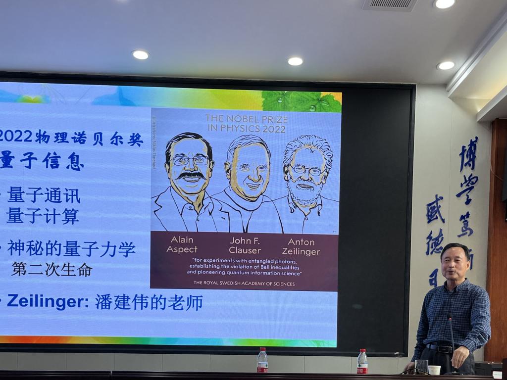 2023年10月23日,英国365集团公司官网“格物论坛”在物理楼主楼319报告厅顺利举行。本期报告主题为《物理与人生》,主讲人为浙江大学物理学院院长郑波教授,主持人为英国365集团公司官网杨雪娟教授,共计90余名师生参与。郑波教授是教育部长江学者特聘教授,2003年获国家杰出青年基金,共发表国际SCI刊物论文120余篇,论文的被引用总数3000余次。