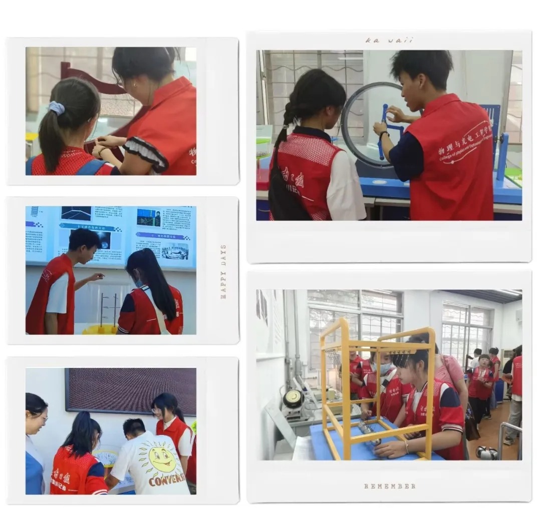 本次活动吸引了众多青少年参与,现场气氛热烈。活动现场孩子们的欢笑声和惊叹声交织在一起,共同谱写了一曲科学探索的美妙乐章。在活动中,有志愿者为小朋友演示实验仪器的使用,讲解其原理,同时,小朋友们还能亲自动手操作实践,切身感受物理学的神奇魅力。