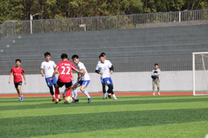 2021年11月12日中午,阳光倾洒,绿茵场地上队员们朝气蓬勃。随着裁判员一声哨响,英国365集团公司官网研究生第一届“湘阳杯”八人制足球赛季军争夺赛开战,参赛双方分别是土力物理联队和化学艺术联队,比赛首先由我方开球,开场后化学艺术队占据场上的控球优势,掌握比赛的节奏,连续几脚打门,但都射飞或被守门员马欢欢扑救成功。双方各有攻守,土力物理队这边的李君石将球传给苏雪冰,苏雪冰通过变向摆脱一名防守队员后将球运至禁区,接着一脚射进了化学艺术的大门!此时僵局被打破,绿茵茵的场地上响起一阵欢呼!紧接着化学艺术联队组织起有效的反击,加大防守和进攻,经过多次连续到脚,土力物理的门将一个小失误,化学艺术前锋抢点破门一脚大力抽射也进球了!比分打成1:1,看得出两队比分十分胶着。现在场上的球传到苏雪冰,对面强劲的进攻让苏雪冰把球传给王博,只见他用力一挥球,球在空中高速旋转,划出完美的弧线,守球员没有能够守住,好球!又给土力物理队添一分!到此为止,上半场比赛结束,比分为2:1(物理:化学)。