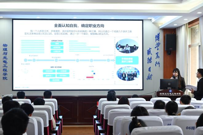 半导体行业是近两年的热门行业,如何利用自身优势抓住行业风口找到优质企业是该专业同学需要思考的问题。2020级光学工程专业硕士生汪易慧芝以“全面认知自我,确定职业方向”为主题充分讲解了行业现景,并聚焦分析了该行业现存的机遇与挑战,鼓励同学们学好本领,抓住机遇,树立目标,不断挑战自我,朝着梦想的方向前进。