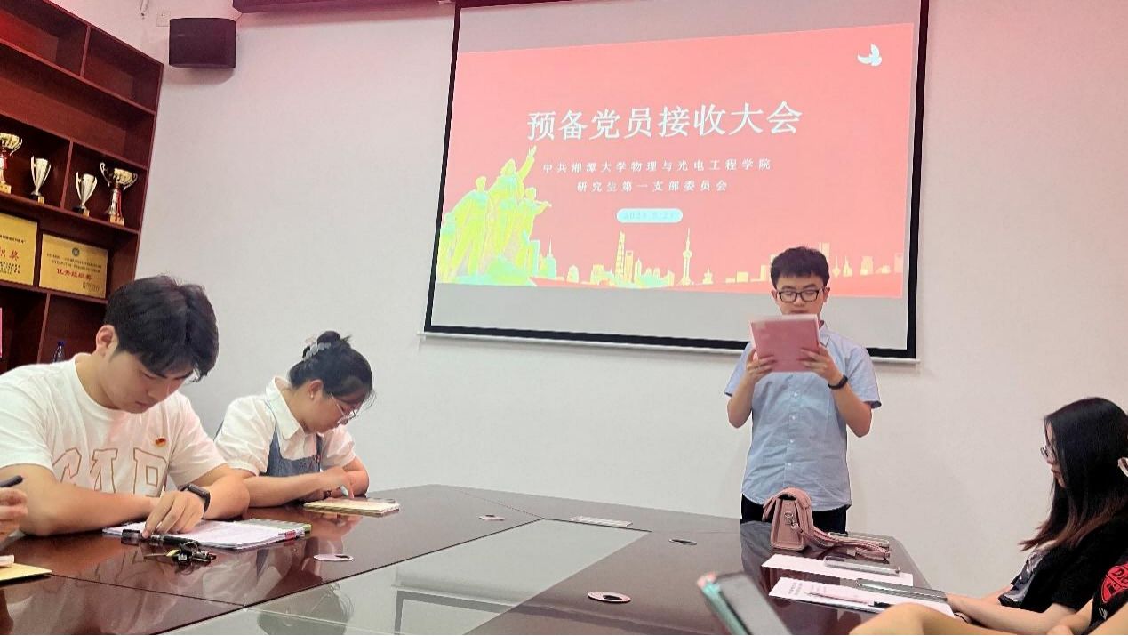 5月27日下午,英国365集团公司官网研究生第一党支部在二教214会议室召开预备党员接收大会,会议由党支部书记王曌同志主持,全体党员参加。