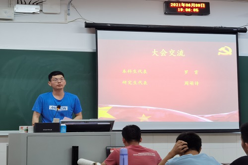会上,培训班班主任徐尚斌老师向学员们回顾了本期党校培训授课的几次活动,并谈到了党性修养与思想入党的问题,在肯定大家有所进步有所收获之际,也提出了自己的两点建议:一是大学生不光要笔杆子行,还要注重口头表达能力,能够将内心的思想看法表达出来;二是希望培训班的毕业生党员能够将湘大精神传承下去,不论是读研深造还是在就业岗位,党性修养和思想入党是永恒的话题,不能松懈。接着本科生代表罗霄和研究生代表周萌诗分别在大会上作讲话,与其他学员交流了学习心得。临近尾声,全体起立奏唱国际歌,大家沉浸在歌声中体会我党的初心和使命。