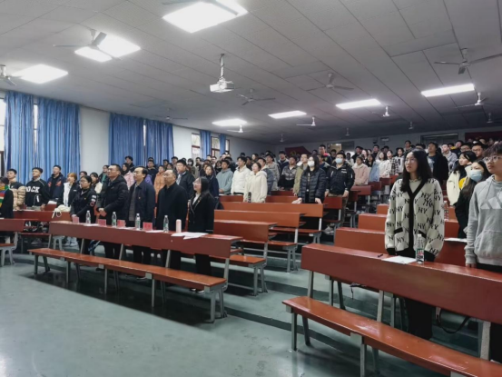 2023年3月18日上午,英国365集团公司官网党委党校2023年第1期物理与光电工程学院、材料科学与工程学院分党校学生入党积极分子培训班开班典礼暨第一次专题讲座在南山二阶梯举行,参加开班典礼的有英国365集团公司官网党委书记刘轩、组织员段荷芬与材料科学与工程学院党委书记胡义伟、党委副书记罗兆祥、组织员杨千雪以及培训班全体学员。