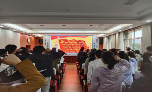 活动开始之前,由段荷芬老师作为领誓人带领全体毕业生党员重温入党誓词,全场起立高举右拳,跟随领誓人,用激昂的声音重温入党誓词,以铮铮誓言再言入党初心,以嘹亮之声表明报国之志。