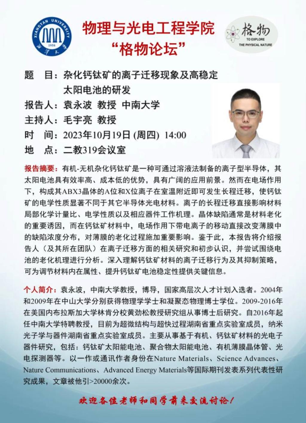 主讲人:袁永波 教授/博士生导师 中南大学