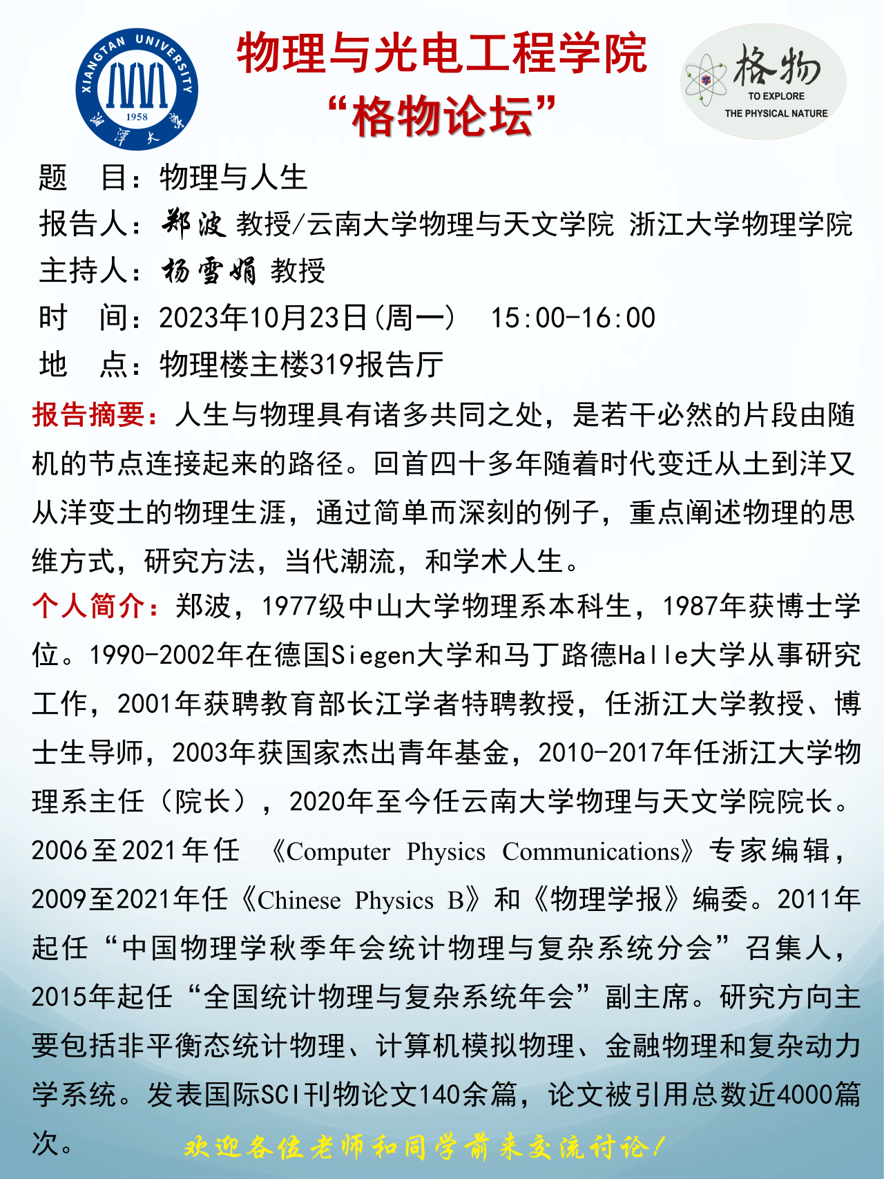 主讲人:郑波 教授/博士生导师 云南大学物理与天文学院 浙江大学物理学院