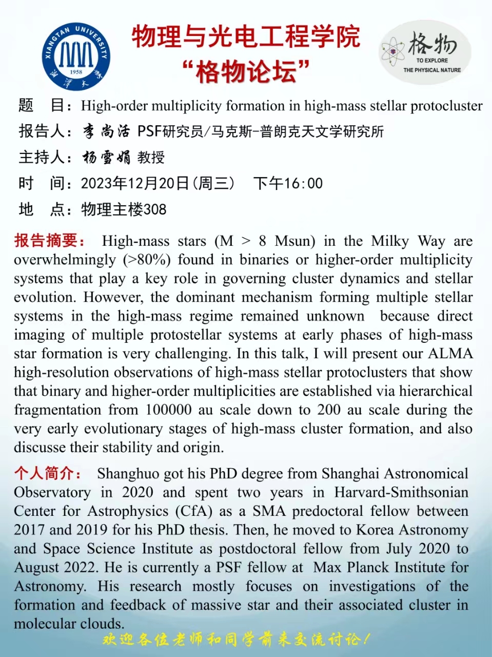 报告地点:物理楼主楼308