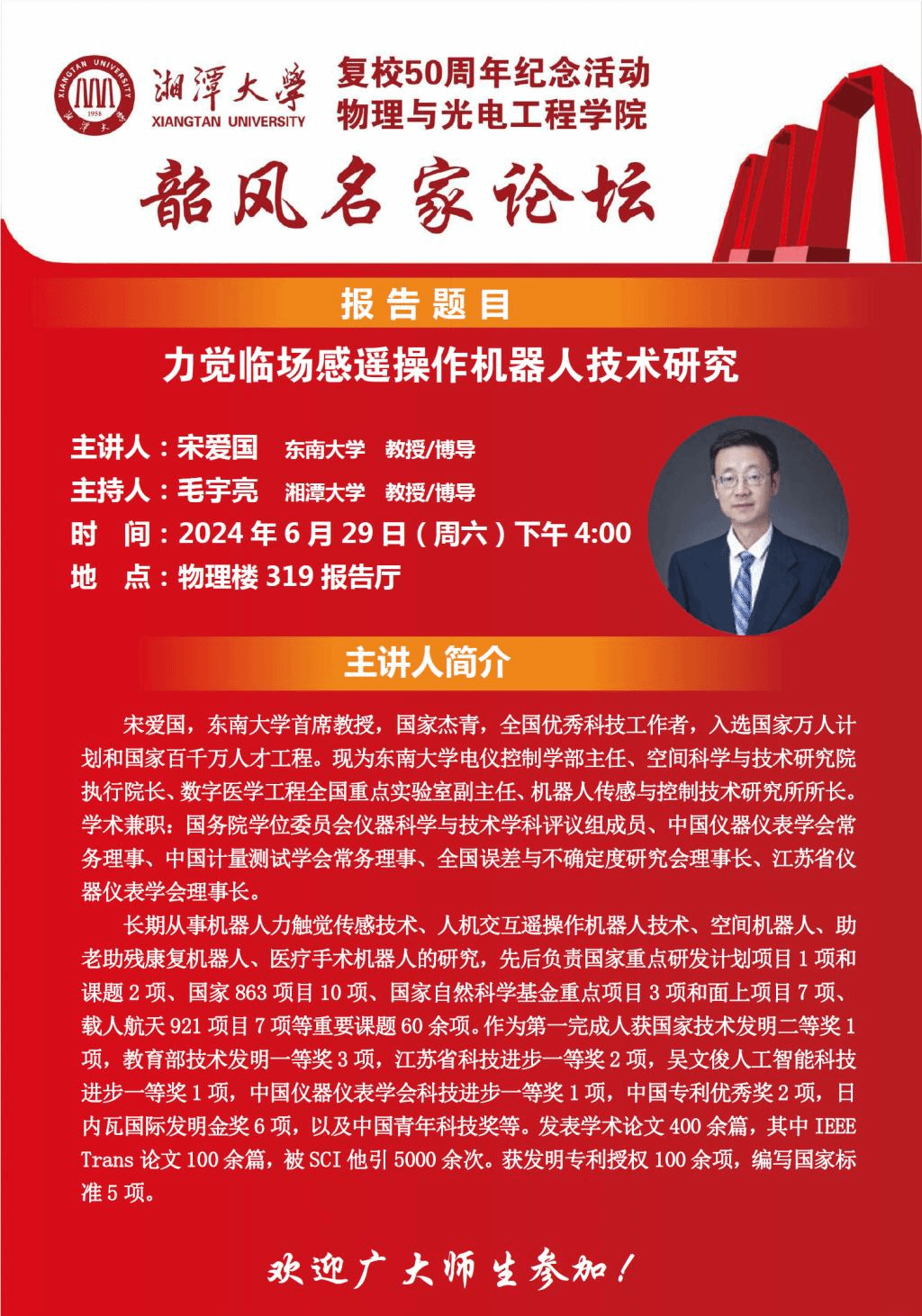 主讲人:宋爱国 教授/博士生导师 东南大学