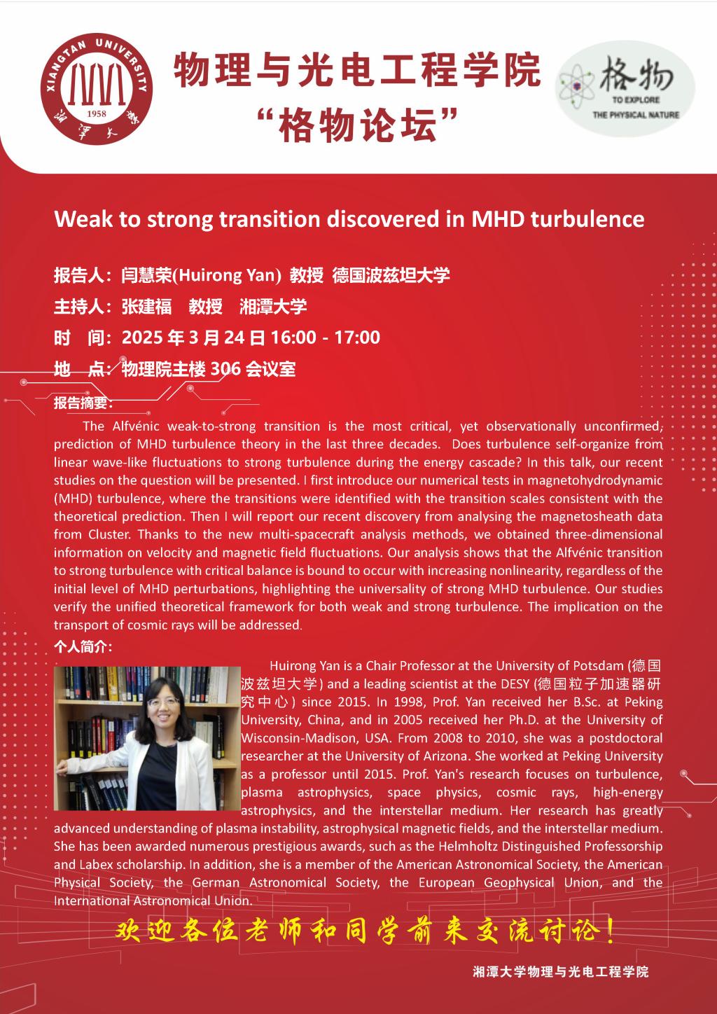 报告地点:物理楼主楼306会议室