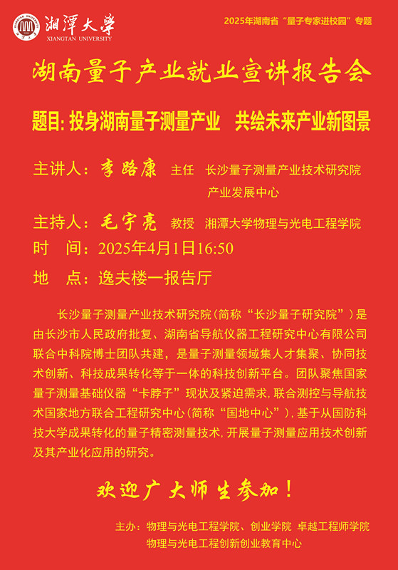 主讲人:李路康 主任 长沙量子测量产业技术研究院