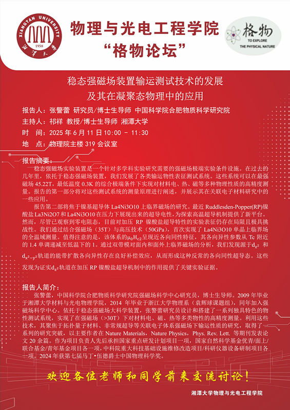 报告人:张警蕾 研究员/博士生导师 中国科学院合肥物质科学研究院